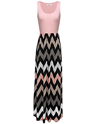 Amborido Women Boho Chevron Striped Print Summer Sleeveless Tank Long Maxi Party Dress Large Size Pink Reviews