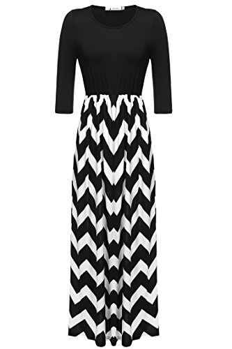 ANGVNS Women's 3/4 Sleeve Scoop Neck Tank Top Chevron Zig Zag Stripe Maxi Dress