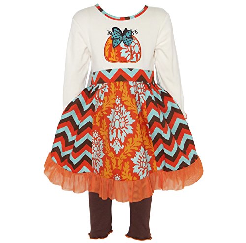 - AnnLoren Little Girls 4/5T Boutique Thanksgiving Pumpkin Damask & Chevron Dress