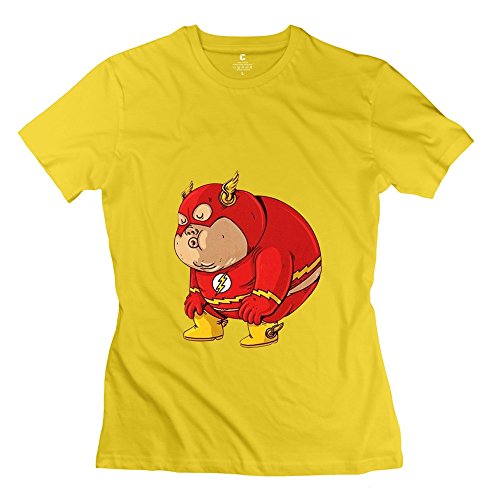 AOPO Flash Fat Superhero Tshirts For Womens Small Yellow