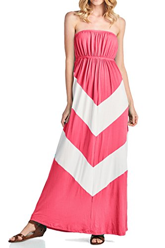 Beachcoco Women's Comfortable Chevron Tube Maxi Dress (M, Coral/White)