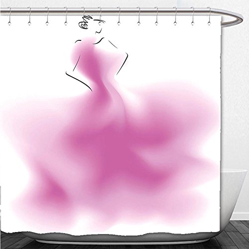 Beshowere Shower Curtain Fashion House Decor Futuristic Sketch of Wedding Dress with Steam Expansion Vogue Artprint Fuchsia