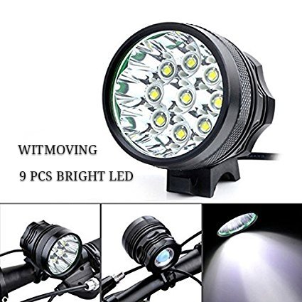 Bike Light,Witmoving Headlamp 9 X CREE T6 LED,3 Modes Mountain Bike Light with 15000LM,6 X 1200mah,18650 Battery Pack+Charger for Cycling, Running,Hiking,Camping,Fishing