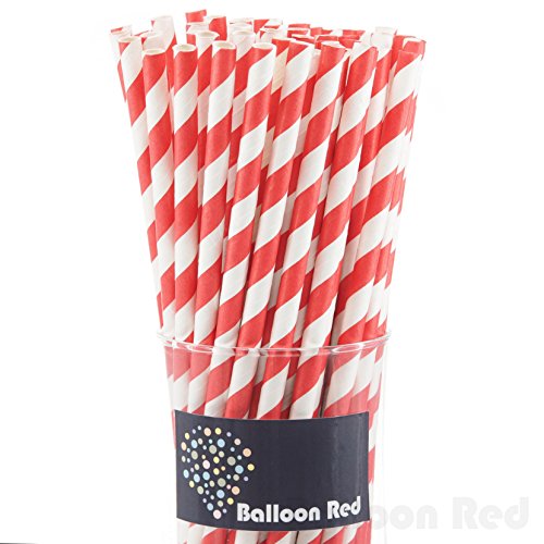 Biodegradable Paper Drinking Straws (Premium Quality), Pack of 100, Striped - Red