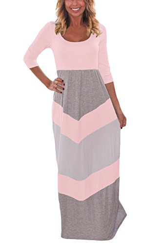 Byoauo Women Chevron Maxi Dress 3 4 Sleeve Striped Casual Long Dresses with Scoop Neck Reviews