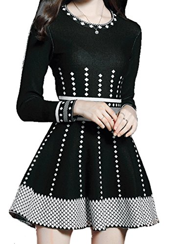 Celebritystyle black/white print sweater knit fit & flare mini dress
