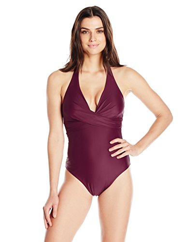 Coastal Blue Women's Swimwear Wrap Halter One Piece Swimsuit, Zen Rose, M (8-10)