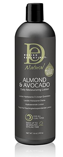 • Promote Healthy Hair & End Dryness: Whether you rock your hair wavy, curly, or coily… battle everyday dryness with Design Essentials Natural Almond & Avocado Daily Moisturizing Lotion! This lightweight enriched blend of Jojoba Oil, Olive Oil, Cocoa Butter, and Wheat Protein now has even more added moisture from Almond & Avocado extracts. Our new formula not only restores hydration to the hair shaft for all day protection, but it protects and strengthens dry, damaged hair from breakage by sealing the cuticle – resulting in hair that is soft, shiny, manageable, moisturized and frizz-free. Great for Everyday Use: We recommend cocktailing our Almond & Avocado Daily Moisturizing Lotion with some of your other favorite Design Essential styling products to create a flawless lightweight natural style. Of course, we all have different styling needs, which is why we created this daily go-to for easy detangling and complete styling versatility. Ideal for finger styling daily wash and go s