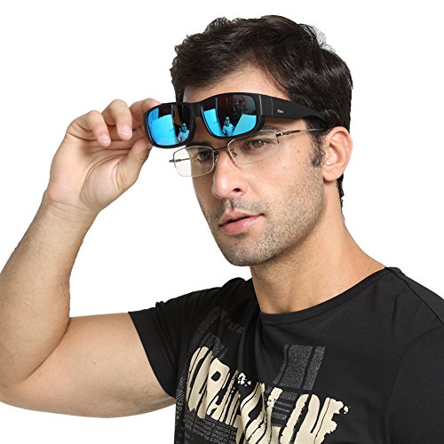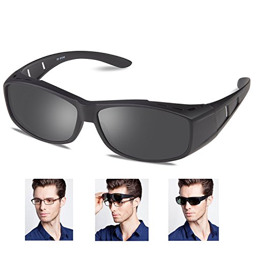 - Over glasses sunglasses: fit over men, women, and children's prescription glasses! Polarized sunglasses can be worn over existing prescription glasses with Fashion appeal and designer features. Side Lens for better peripheral vision and eye protection.