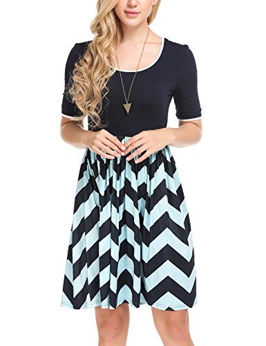 Elesol Women Half Sleeve Bohemian Chevron Print Summer Midi Dress Navy Blue XL