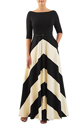 eShakti Women's Chevron stripe cotton knit belted maxi dress 1X-18W Regular Black/angora