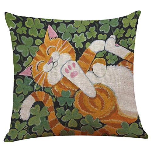 European Cat Flax Square Decorative Throw Pillow Case Cushion Cover 43x43 CM by Vibola (C)