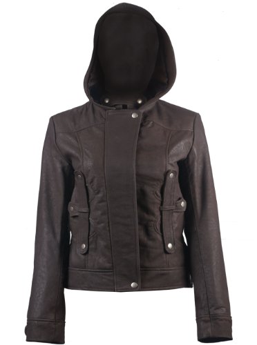 FactoryExtreme Galaxy Aster Hoodie Womens Dark Brown Leather Jacket, Large, Brown