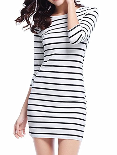 - Feature:This striped bodycon is 3/4 sleeve,round neck,slim fit yet very stretchy.