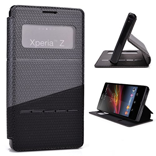 - Grey / Black Slide Auto Answer Stand Case for Sony Xperia Z L36h