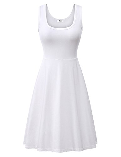 Herou Women Summer Beach Casual Flared Tank Dress (Medium, White)