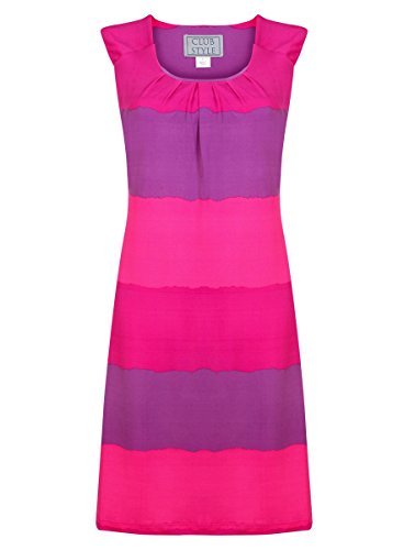 Dressed up or dressed down, this striped dress offers a colorful, eye-catching look that you can wear for any summer occasion. The Horizontal Striped Dress Purple/Pink is made from our soft 92% polyester / 8% spandex fabric blend and features a simple silhouette with a sleeveless bodice, a U-shaped neckline, gently pleated accents that add a touch of texture at the neck, and an A-line silhouette that makes it flattering on every figure. With its modest hemline and purple and pink gradient stripe design, this summer dress offers a fashionable look and a comfortable fit that you can wear for day or night. For a casual outing on a summer day, keep it simple with flat sandals and a cotton beach tote. For a summer date or a dinner party with family and friends, pair it with wedge sandals and a small handbag for a simple yet sophisticated look.