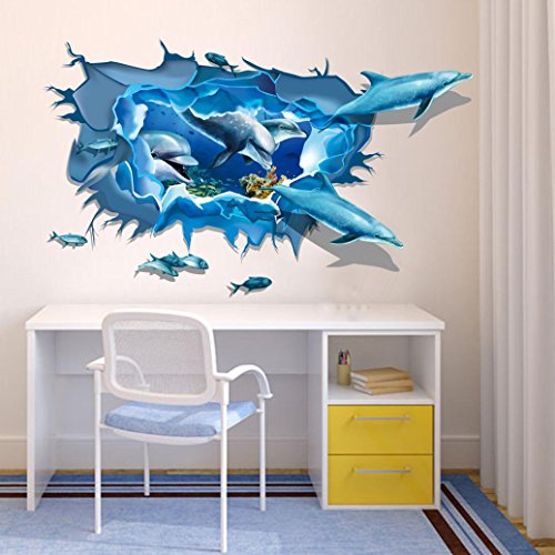 Iuhan Fashion 3D Dolphin Floor/Wall Sticker Removable Mural Decals Vinyl Art Living Room Decor