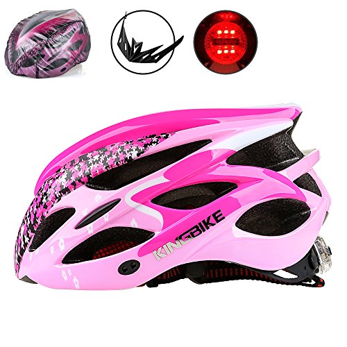 KINGBIKE Adult Bike Helmet, Safety Rear Led Light /Helmet Rain Cover / Lightweight (pink)