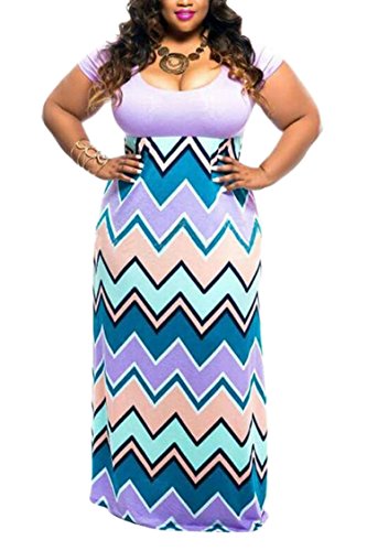 Linsery Women's Plus Size Scoop Neck Tank Top Chevron Zig Zag Stripe Maxi Dress (XL, Purple)