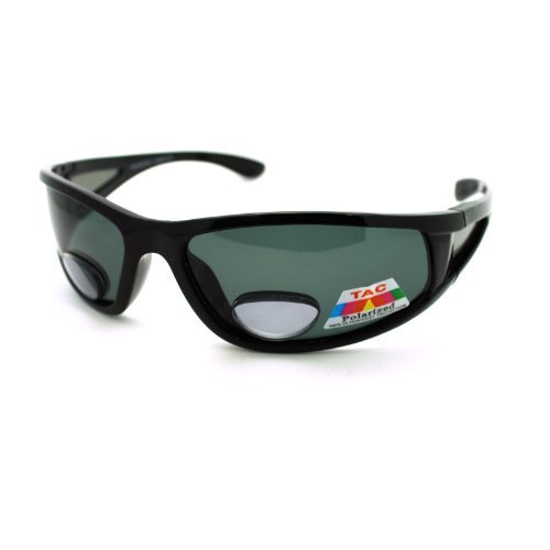 Mens Wrap Around Sport Sunglasses Polarized Plus Bifocal Reading Lens Black