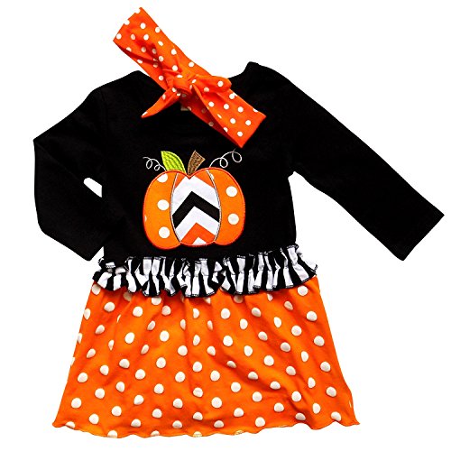 So Sydney Girls or Toddler Fall Holiday Polka Dot, Scroll, Stripe Pumpkin Dress (XL (6), Chevron & Dot)