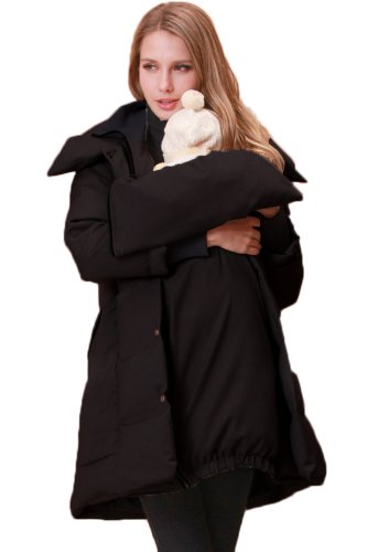 Sweet Mommy Big Collar Maternity and Mother's Down Coat with baby pouch Black, L