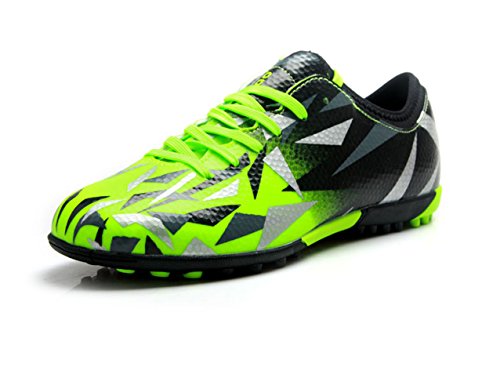 T&B Soccer Shoes Turf Kids Indoor Sport Lace Up Light Green Black No.76516-Lv-2.0 US