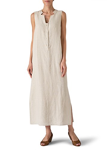 Vivid Linen Sleeveless Slip-on Dress-L-Oat