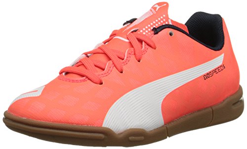 PUMA Evospeed 5.4 Indoor JR Soccer Shoe (Infant/Toddler/Little Kid/Big Kid) , Lava Blast/White/Total Eclipse, 4 M US Big Kid