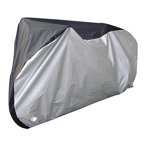 - JUVALE WATERPROOF BICYCLE COVER: This black & silver Juvale waterproof cover protects your bicycle from scratches and the wear and tear that comes from leaving your bicycle outdoors. Fits most bicycles up to a 29-inch wheel size.