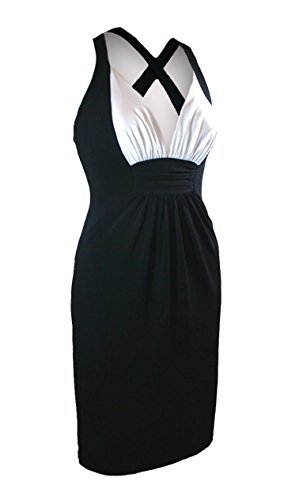 A Classic holiday party dress in black white jersey, sleeveless with a crossover back style by White House Black Market.