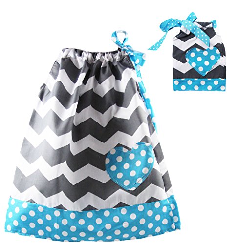The most adorable and affordable pillowcase dresses around! Beautiful chevron and polka dot pattern and heart embellishment make this dress just too sweet to pass up! These dresses are perfect for summer, add leggings and they perfect for fall!! For cleaning, please hand wash cold and hang dry. Have your little one match her favorite doll!! 18" Doll size option available.