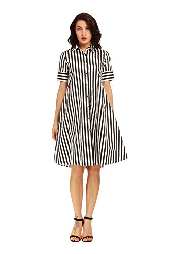 Women's Casual Stripe Cotton short Sleeve Button Down Shirt Dresses Size XXL Black Stripe