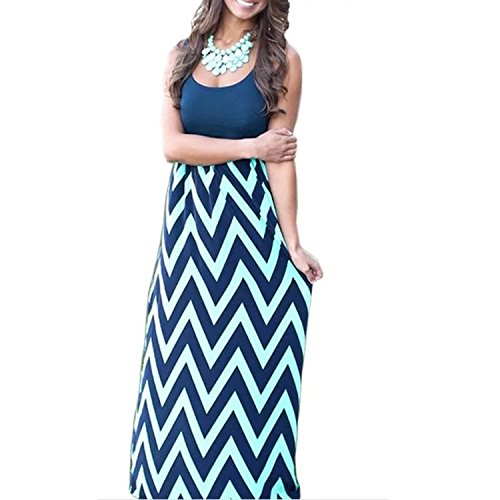 Women's Chevron Stripe Tank Top Casual Maxi Long Dress (Medium, Navy Blue)
