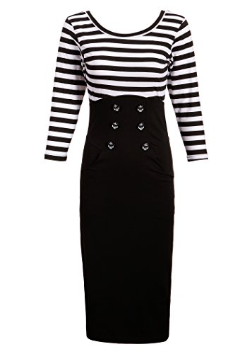 - Womens black and white striped sailor dress