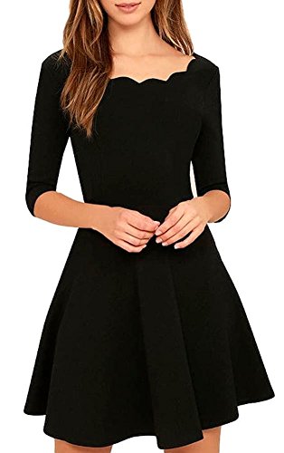 Womens Cute Scallops Neckline Thick Soft Half Sleeves Stretch Little Black Dresses (US XL, Black) Reviews