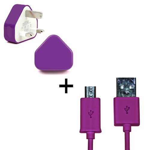 Xtra-Funky Exclusive Universal USB UK Wall Mains Charger Plug Adapter and 1 Meter Micro-B USB Cable - PURPLE