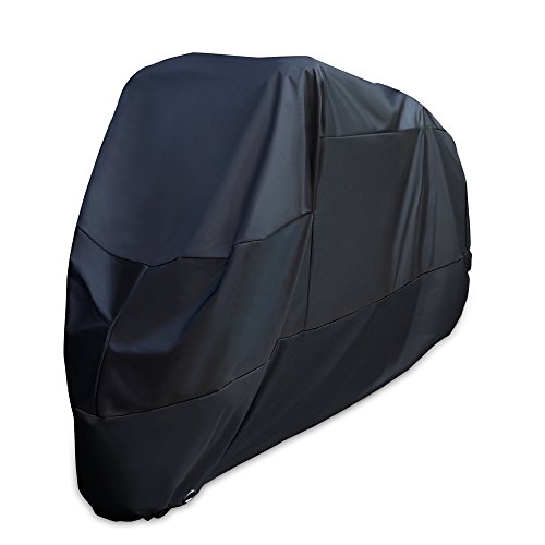 XYZCTEM Motorcycle Cover -Waterproof Outdoor Storage Bag,Made of Heavy Duty Oxford Material and Fits up to 114 inch Harley Davison and All motors(Black& Lockholes)
