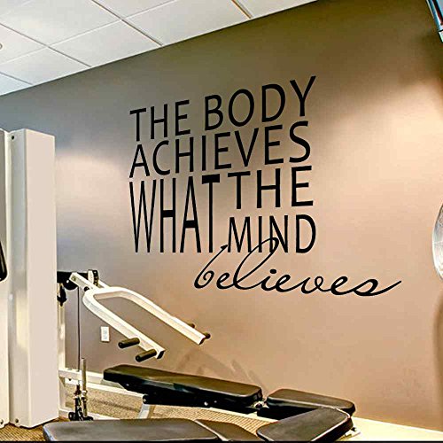 Fantastic handmade decal!!Gym Motivation Wall Decal Quote - The Body Achieves what the mind believes Wall Decal - Exercise Wall Decal - Exercise Room Decal.Brought to you by The Decal Lab!See the color chart for your options. The photographs are for a reference be sure to use the measurements when ordering.