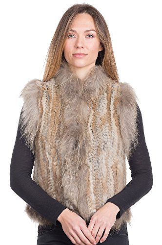 Laurel Knitted Rex Rabbit Fur Vest, NATURAL, Size SMALL (6)