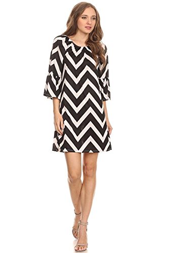 Women's Chevron Print A-Line Dress. MADE IN USA (Medium, BLACK)