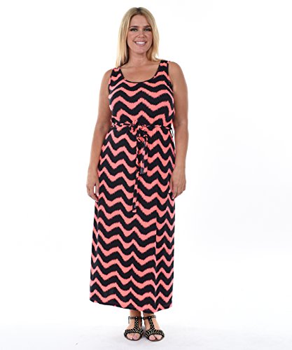 Allora Women's Plus Size Chevron Maxi Dress (1X, Coral/Black)