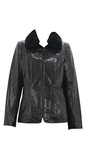 - New Black Embossed Lamb Leather Jacket with detachable Rex Rabbit Collar.