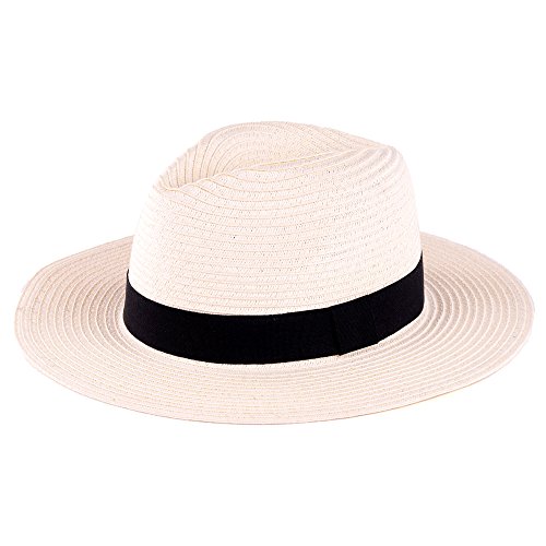 BYOS Summer Classic Straw Panama Fedora Sun Hat In Solid Color W/ Black Grosgrain Band Trim (White) Reviews