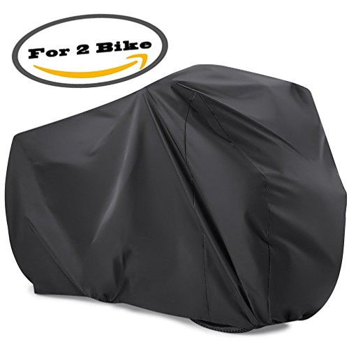 - 【2 bikes】Suitable for 2 bikes up to 26" wheel size and most of mountain bike, city bike up to 29" wheel size . Non- stretched dimensions: 200cm L x 110cm W x 75cm H . (78.7''x43.3''x29.5'',PLEASE MEASURE YOUR BIKE BEFORE ORDERING)