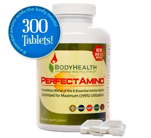 PerfectAmino (300 Tablets) 8 Essential Amino Acid Tablets with BCAA by BodyHealth™, Vegan Branched Chain Protein Pre/Post Workout, Increase Lean Muscle Mass, Boost Energy & Stamina, 99% Utilization