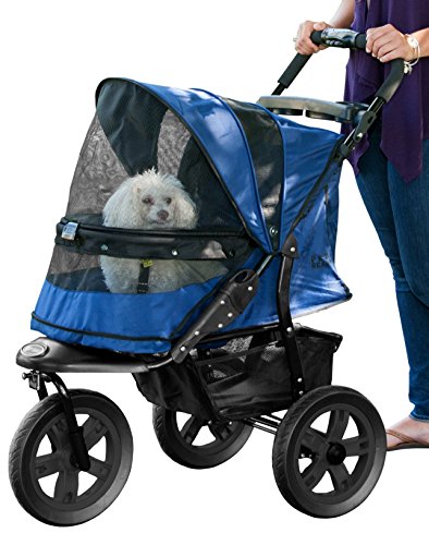 The new Pet Gear, Inc. AT3 NO-ZIP Pet stroller is the perfect option for taking your pet wherever you go; from strolling through your neighborhood to the rougher terrain found on your favorite walking or jogging trail. No zippers means no hassle when trying to open and close the stroller. Our new NO-ZIP technology means that you can easily gain access to your pet without fumbling with difficult zippers! The AT3 NO-ZIP Pet Stroller also features an elevated paw rest. Your pet can easily look out of the stroller by using the front bar for support. This stroller navigates over rough terrain with ease, whether jogging or strolling, thanks to the front locking wheel. Speaking of strolling, the new panoramic view window allows your pet to remain safe inside of the stroller without missing any sights along the way! Features large storage basket, parent tray for all of your extras, interior safety tether and 12" E.V.A. tires. Interior dimensions: 30"L x 13"W x 22"H. Suitable for pets up to 75