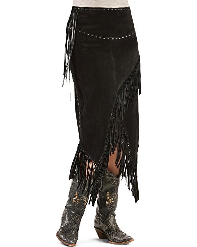 Scully Women's Asymmetrical Fringe Suede Leather Skirt Black X-Large