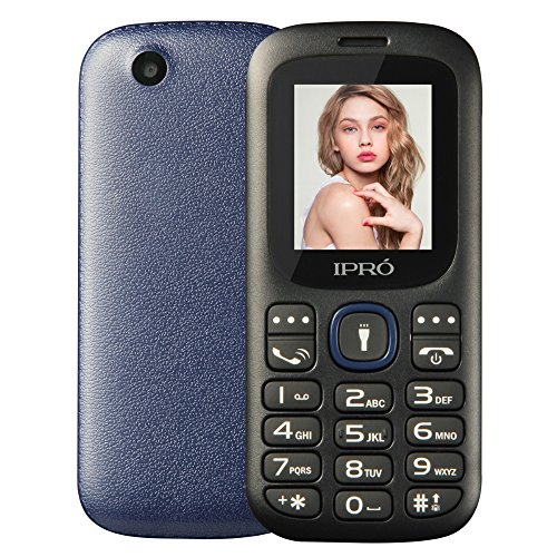 IPRO i3185 Mini 1.8" Unlocked GSM Dual SIM Cell Phone with Quick Torch - Simple Bar Style Feature Phone with T9 Keyboard, FM Radio, Bluetooth - No Contract Mobile Phone (Bla+Nav)